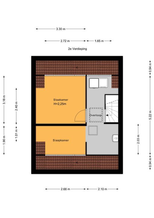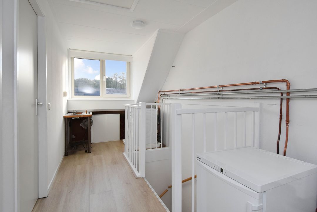 Overloop met dakkapel, luik naar de vliering en opstelplaats cv-ketel en wasmachineaansluiting, slaapkamer aan de voorzijde met dakkapel en slaapkamer achterzijde ook met dakkapel, veel bergruimte in de knieschotten.