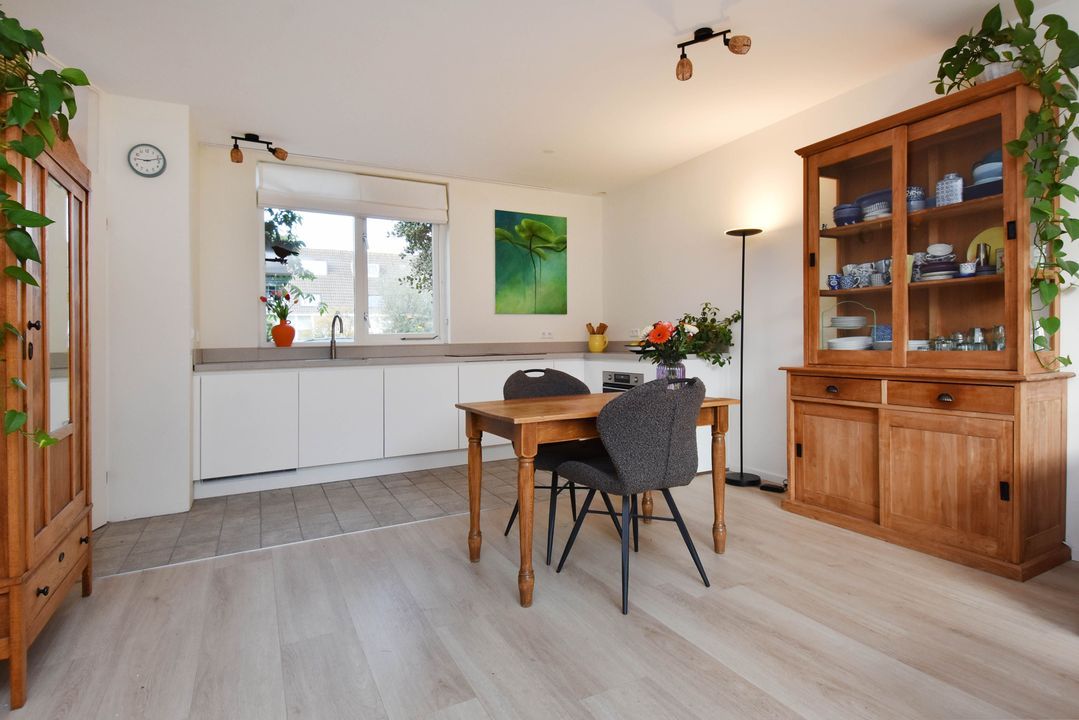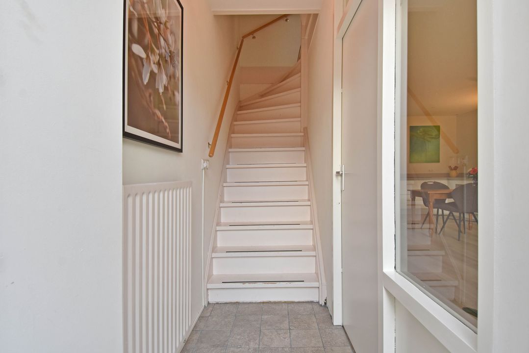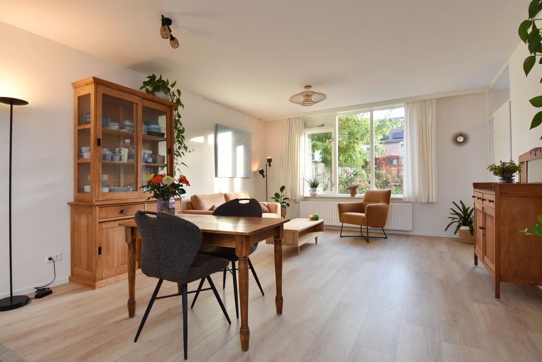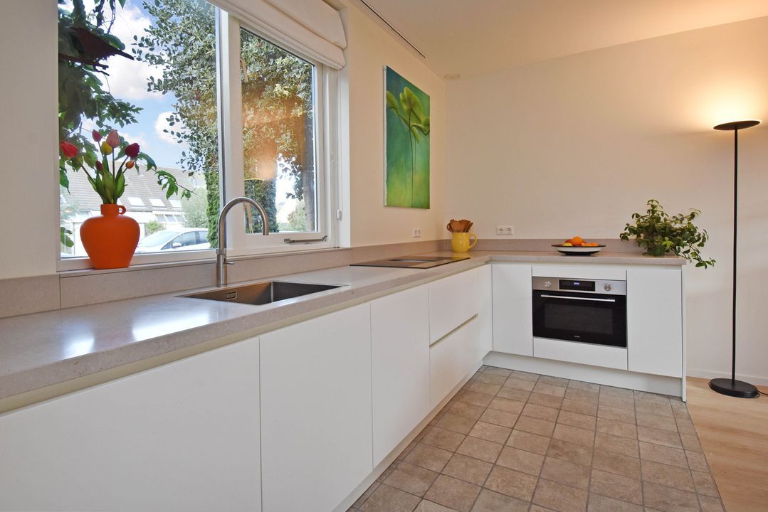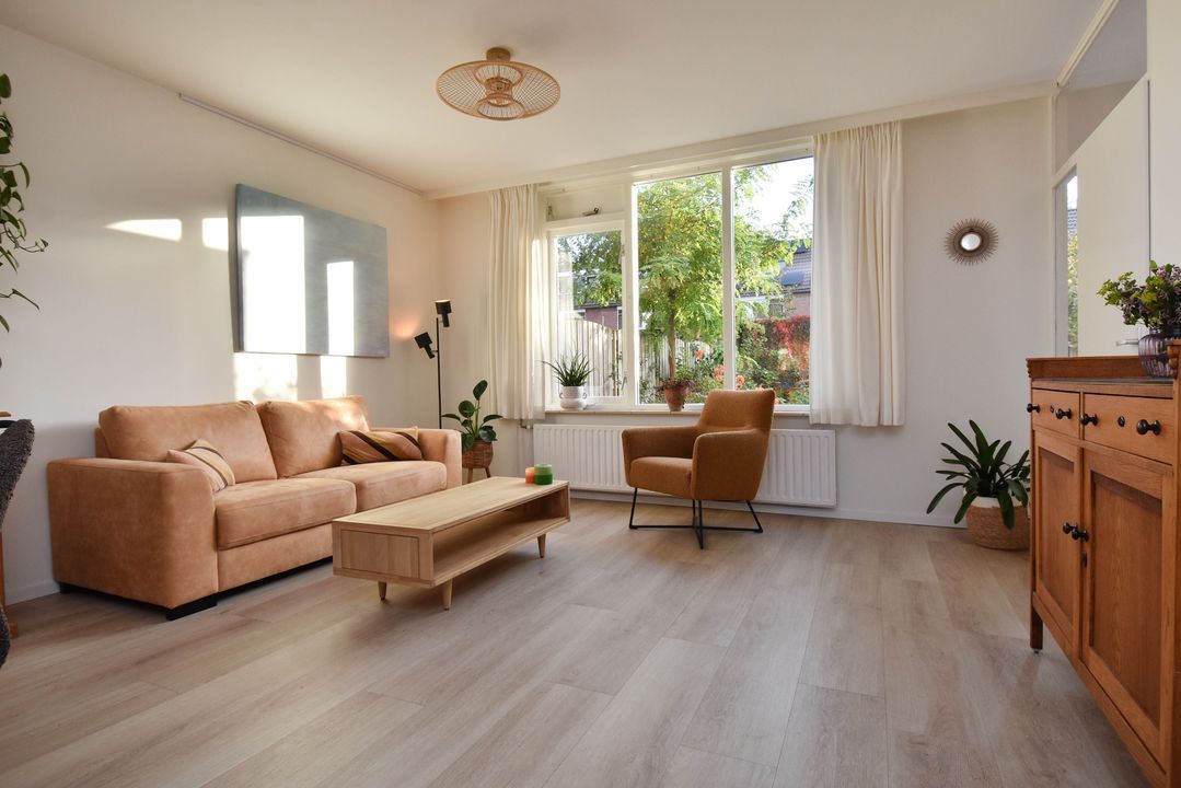 Ruime betegelde voortuin, entree van de woning via entreehal met meterkast, modern en luxe toilet met fonteintje, woon-/eetkamer met vaste trapkast en nieuwe laminaatvloer met vloerverwarming, luxe nieuwe open keuken voorzien van vaatwasser, koelkast, combimagnetron, Quooker en een inductiekookplaat met afzuiging, aan de achterzijde kijkt de woonkamer uit op de tuin die voorzien is van twee terrassen en volop zon en privacy biedt. Achterin staat een ruime berging met elektra en er is een achterom.