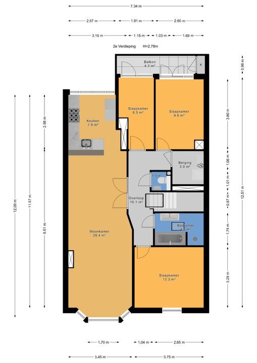 94m² 3 kamers