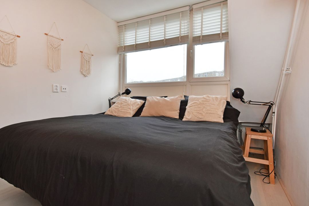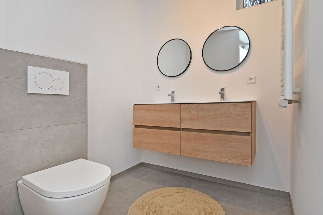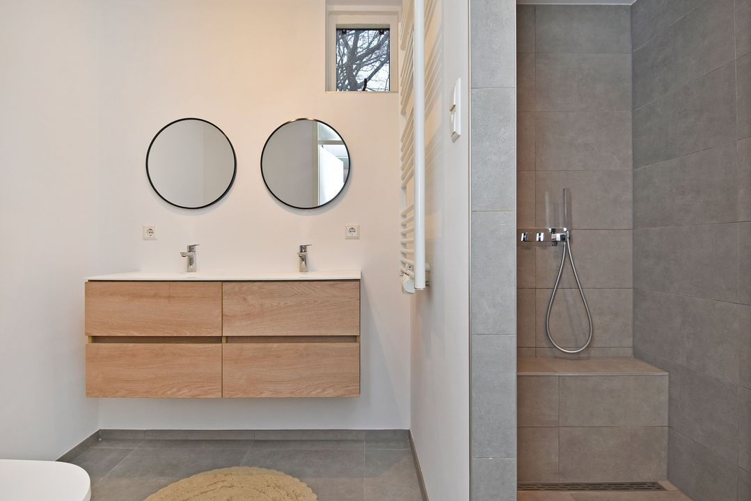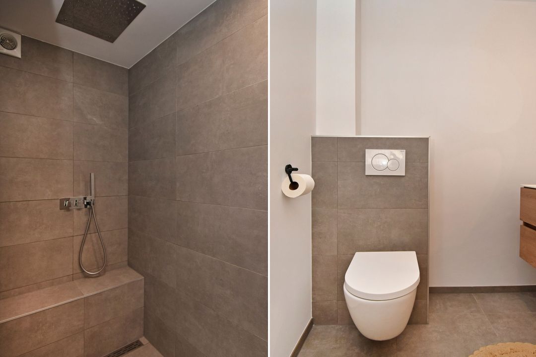 Eerste etage: overloop met vaste kastenwand, L-vormige slaapkamer voorzijde, nieuwe extra grote badkamer met inloopdouche, toilet en wastafelmeubel, twee slaapkamers achterzijde met dakkapel.