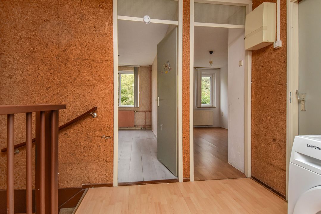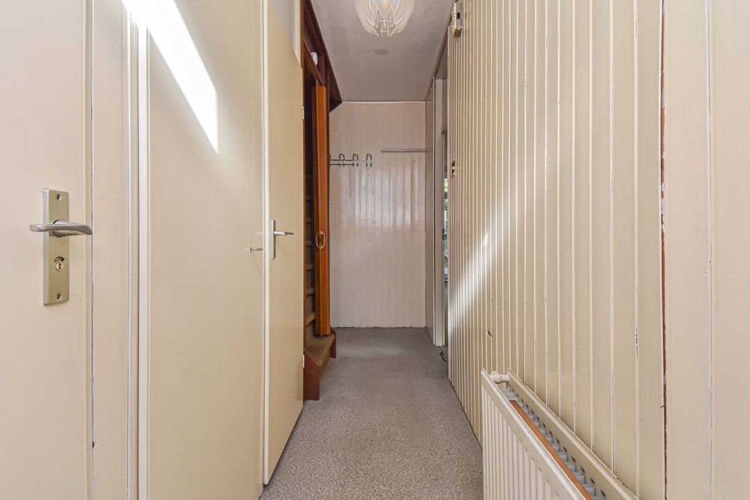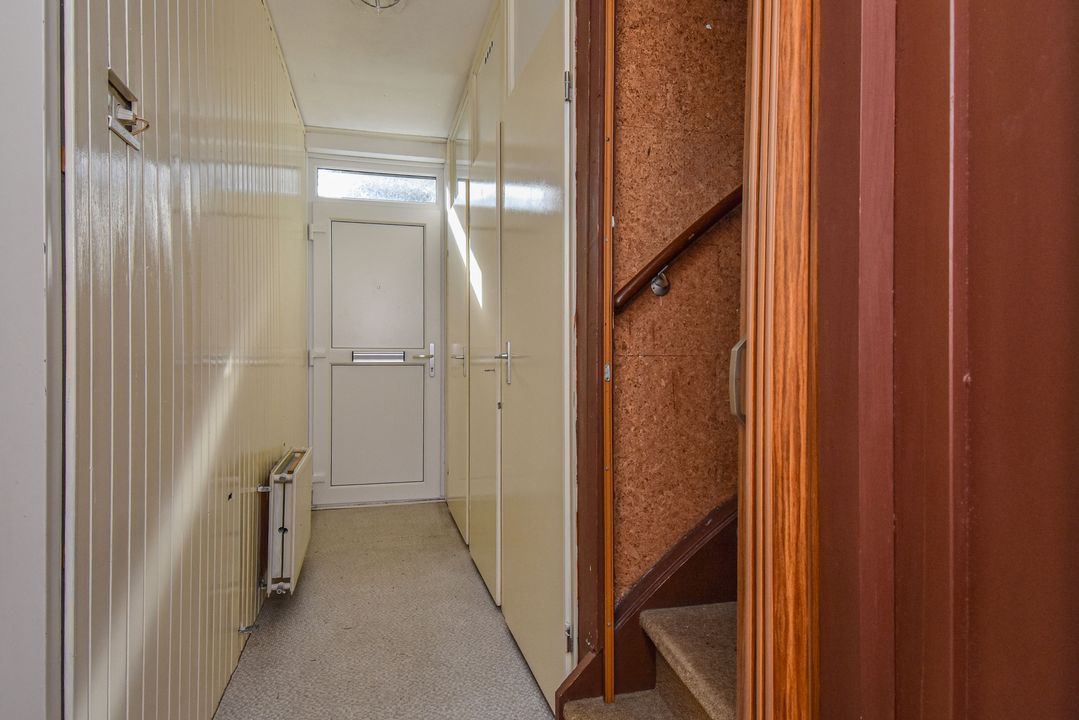 Entree via de ruime voortuin, entree van de woning, gang, toilet met een fonteintje, vaste kast, meterkast, woon-/ eetkamer met deur naar een ruime achtertuin met achterom keuken aan de voorzijde met een eenvoudige inrichting voorzien van diverse apparatuur waaronder een inductie kookplaat (functioneert niet goed), een afzuigkap, een combimagnetron en een vaatwasser (werkt niet), trap naar de 1e etage, overloop, 2 slaapkamers aan de achterzijde, ruime doorgebroken slaapkamer aan de voorzijde, badkamer met een ligbad, een douche, een toilet, aansluiting voor de wasmachine en een vaste wastafel, vlizotrap naar de 2e etage, grote kapetage met dakraam, opstelplaats van de cv-combiketel.