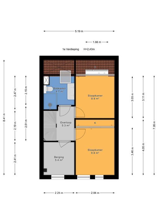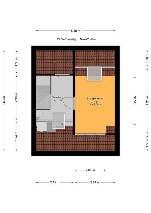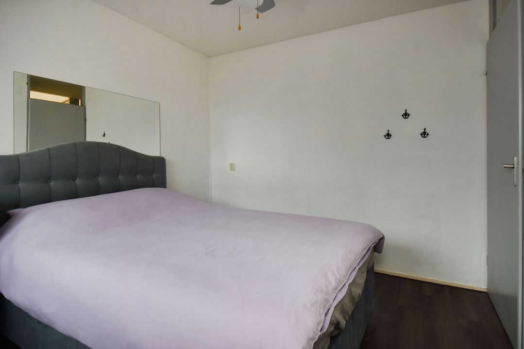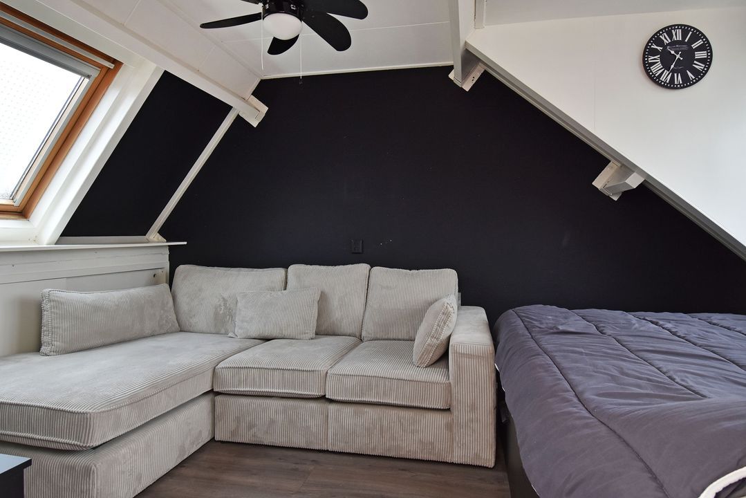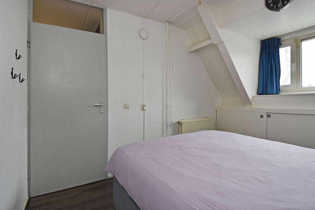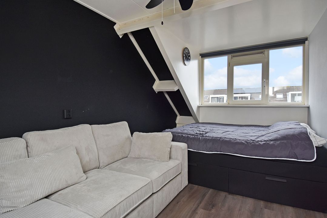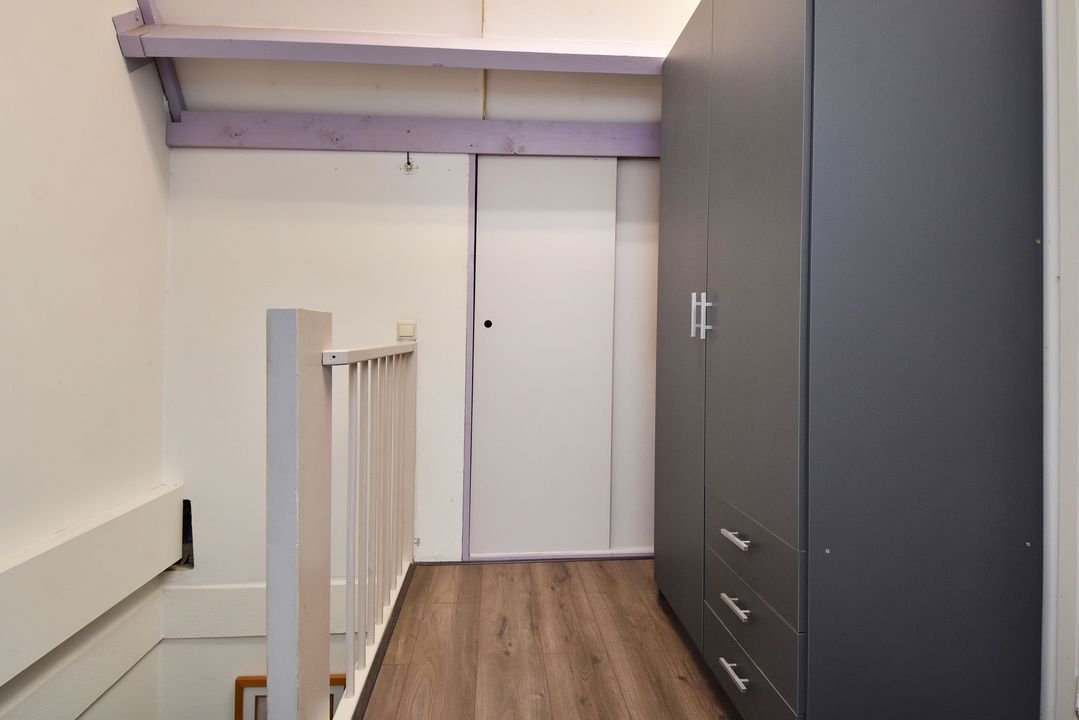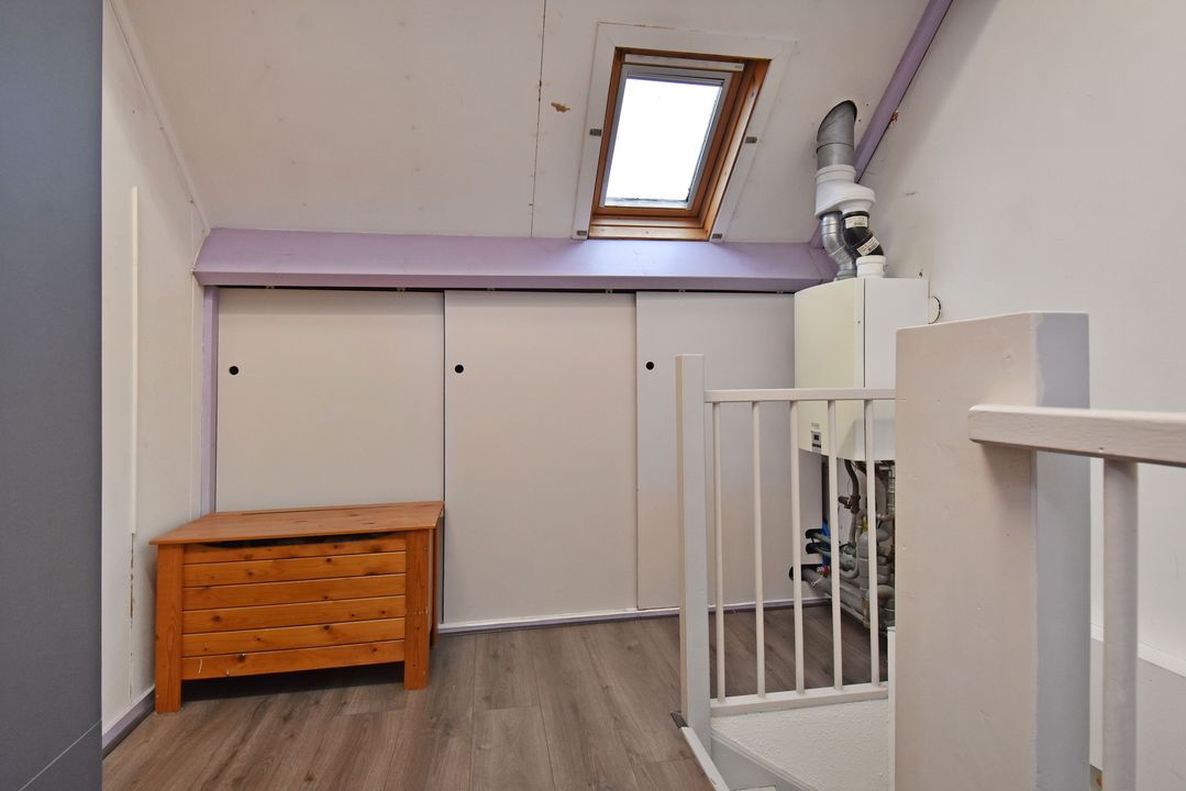 Overloop met bergruimte aan achterzijde, opstelplaats van de cv-ketel, de aansluiting voor de wasmachine en een kantelraam aan de voorzijde, slaapkamer met een kantelraam, een dakkapel aan de voorzijde en bergruimte in de knieschotten aan de voor- en achterzijde.