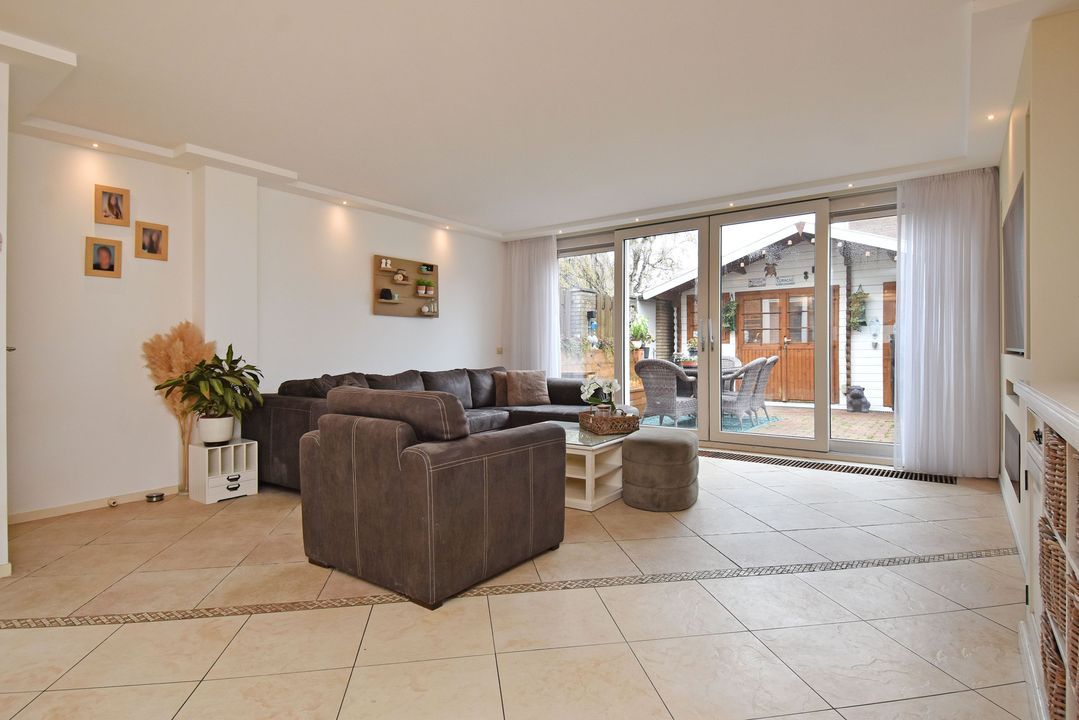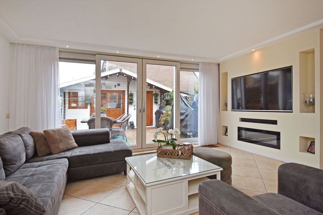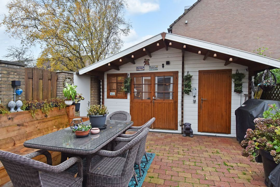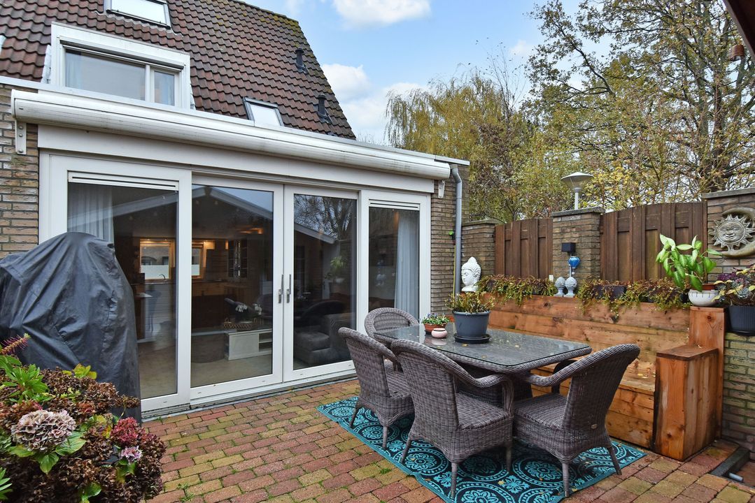 Voortuin, entree van de woning, gang/vestibule, meterkast, toilet met een wandcloset, een aan de voorzijde gesitueerde open keuken voorzien van divers inbouwapparatuur zoals een vaatwasser, een 5-pits gaskookplaat, een rvs-front combi magnetron, een koelkast, een rvs-afzuiging en een trapkast, woonkamer met een Cinewall en een kunststof schuifpui voor toegang naar de tuin. De achtertuin is gesitueerd op het zuidwesten, heeft een zij-entree en een chalet met diverse toepassingsmogelijkheden en een houten berging. Op de achtergevel van de woning is er een zonwering aanwezig.