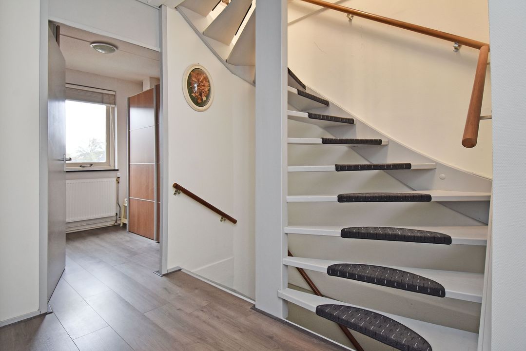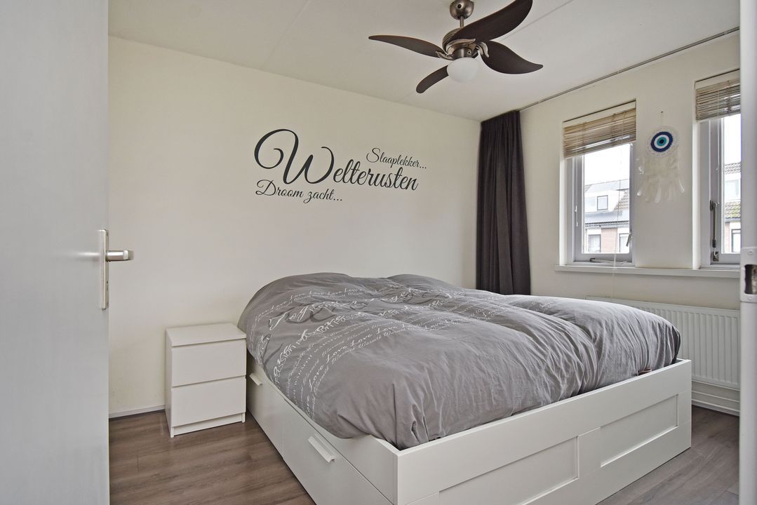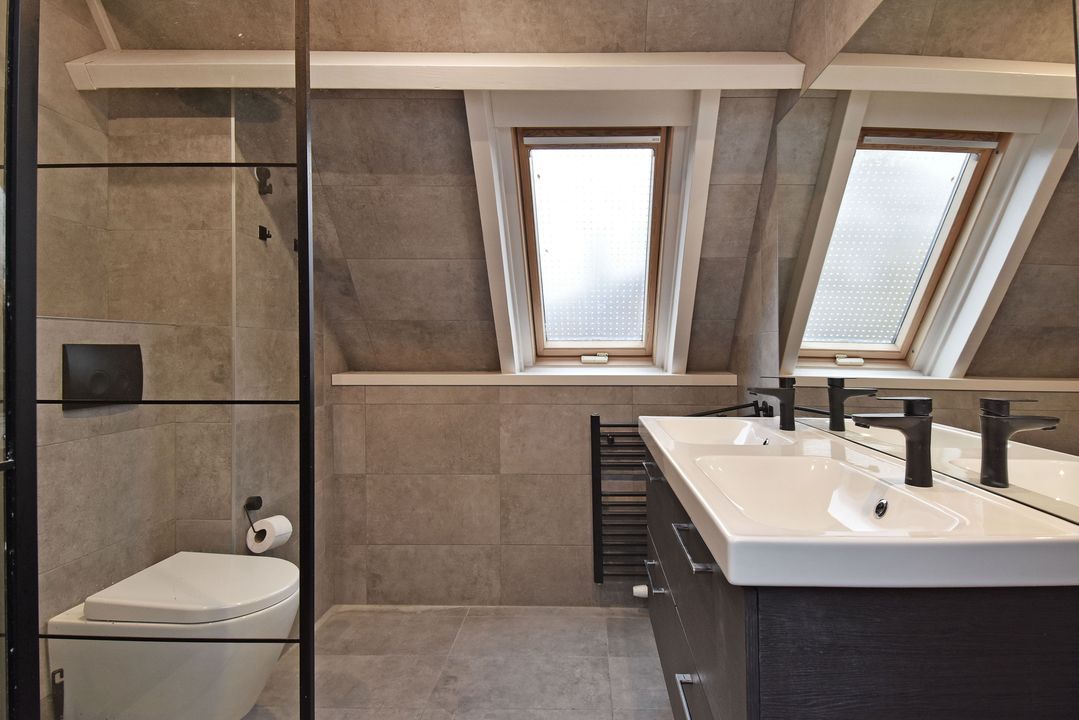 Overloop, voorzijslaapkamer, voorslaapkamer met een vaste kastenwand, achterzijslaapkamer met een dakkapel en bergruimte in het knieschot, gemoderniseerde badkamer met een inloopdouche, een wandcloset, een dubbele vaste wastafel met meubel een designradiator en een kantelraam.