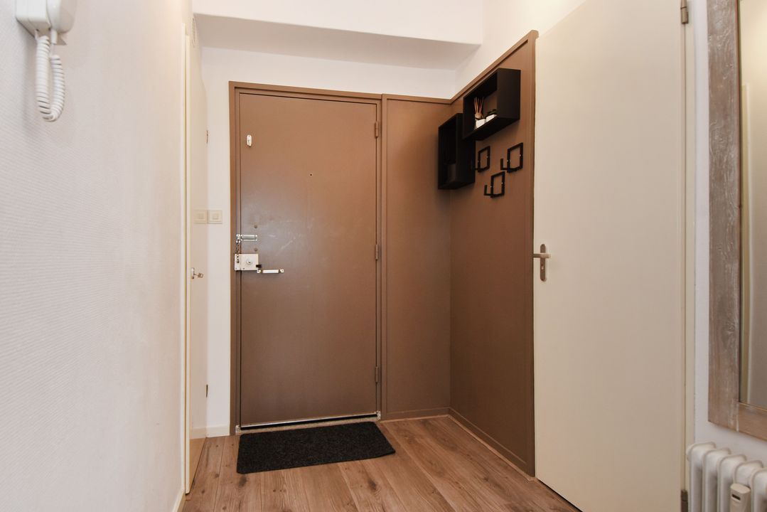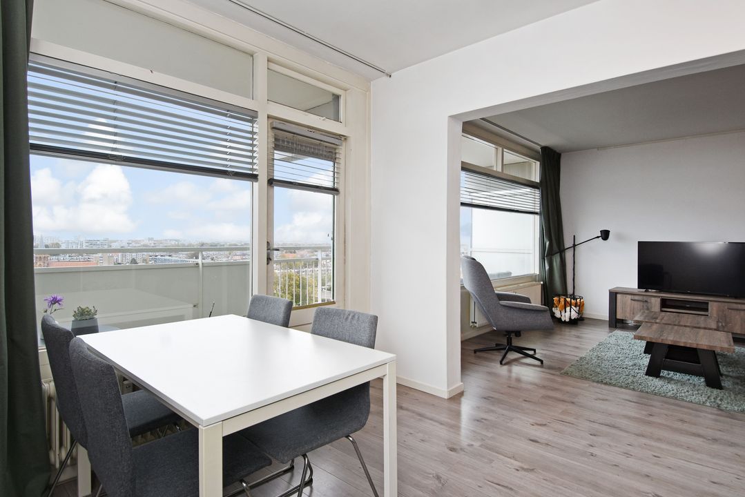 This nice 2-room apartment is located in the Kraayenstein district on the 11th floor of the apartment complex with a balcony of approx. 10 m2 and a storage room on the same floor. In addition, there is a communal, spacious, bicycle/scooter parking space on the ground floor within the complex and there is a parking lot both in front and behind the complex. The one at the back is closed by a barrier. In terms of location, it could not be more central in relation to the various facilities. For example, on the ground floor there are various (day) shops and a supermarket. On the other side of the street there is a stop for the RandstadRail line 2 towards the center of The Hague. Do you want to enjoy the beach in summer and winter? Grab your bike and within 10 minutes you will be on the beach of the seaside resort of Kijkduin. Also located on the outskirts of The Hague with good connections to the main roads and you also can enjoy the green environment in the area such as the Madestein recreation area and the Ockenburgh forest.