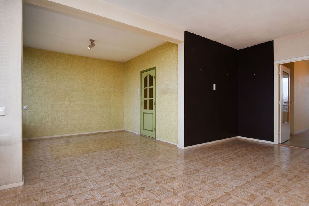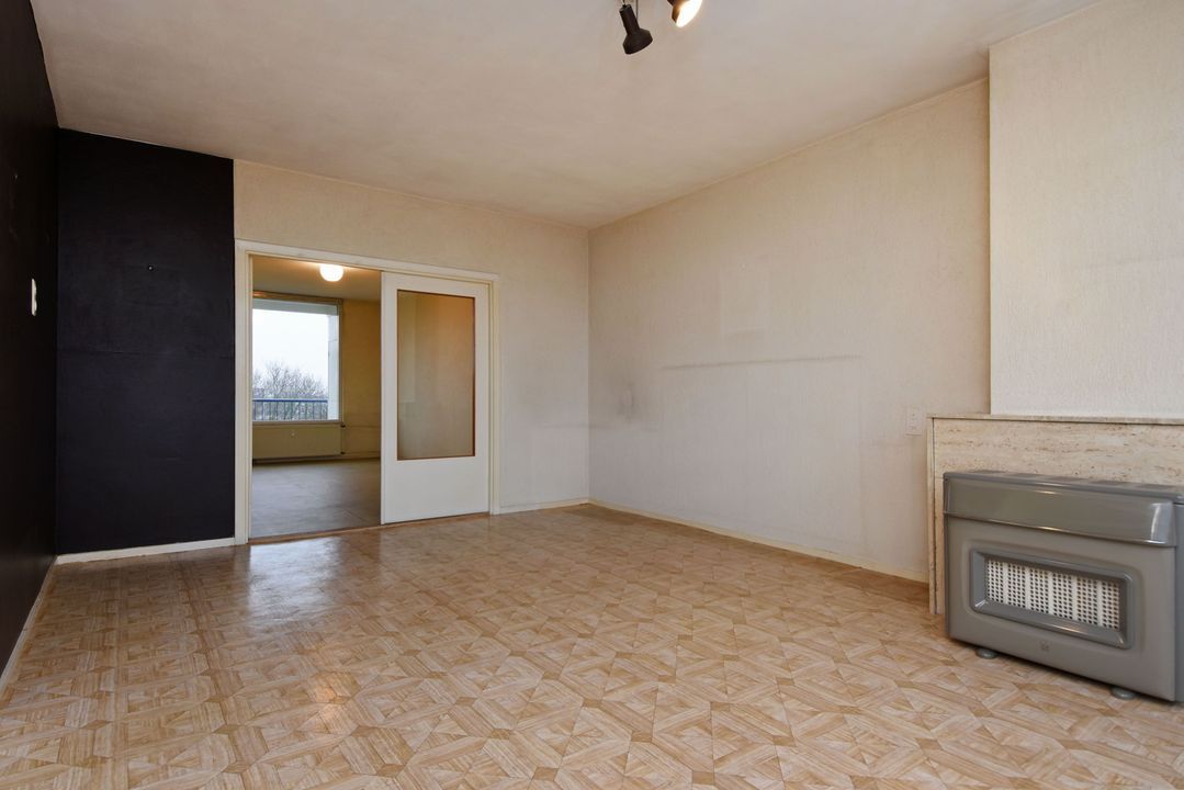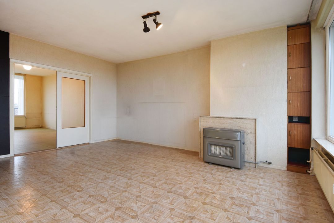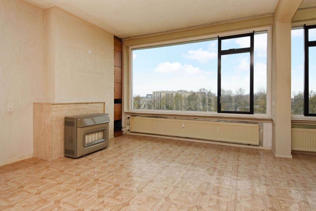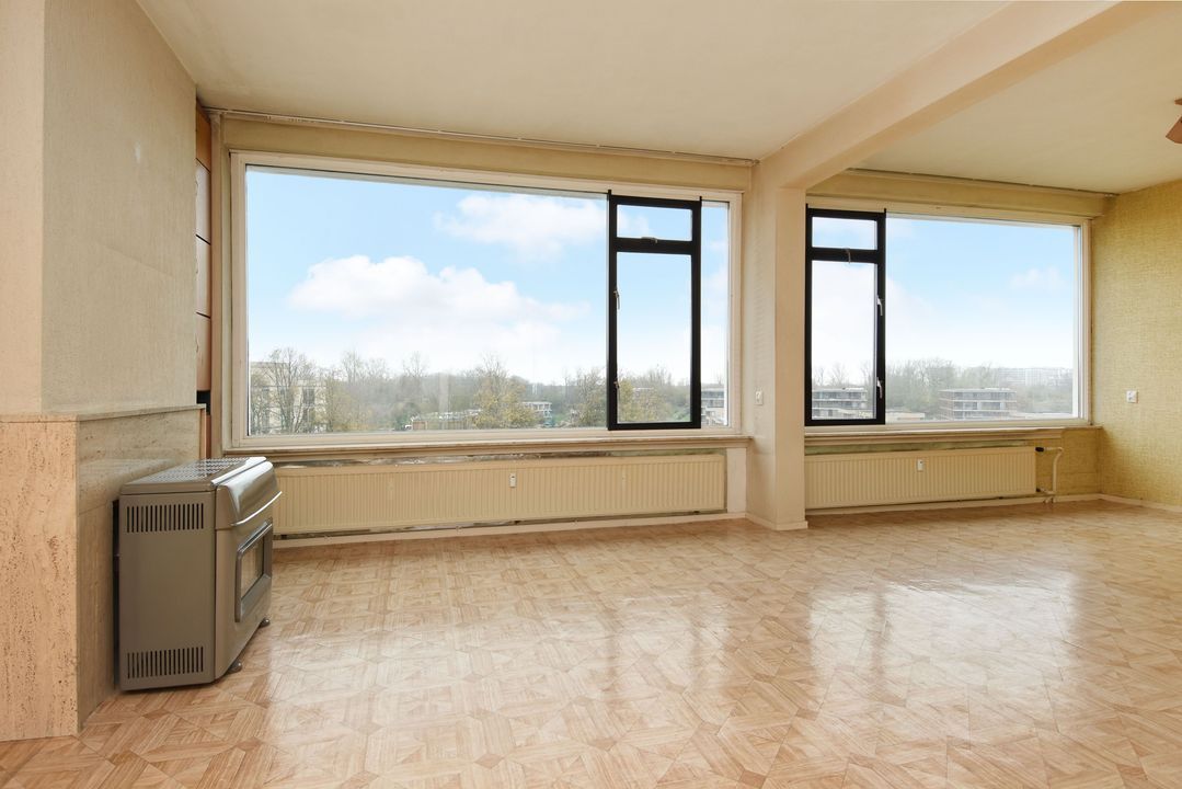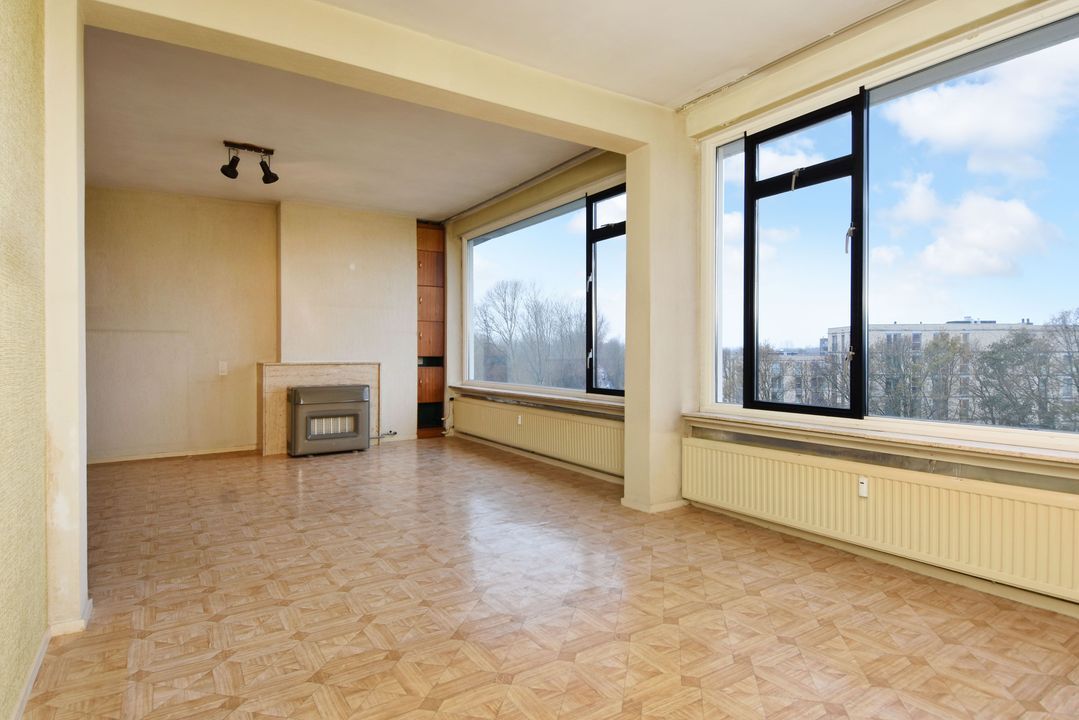 Gesloten centrale entreehal. Lift of trap naar 6e etage, entreehal met meterkast, woon-/eetkamer met bijgetrokken zijkamer en travertin schouw, keuken zonder apparatuur, slaapkamer aan de achterzijde, badkamer met bad/douchecombinatie en wastafel, toilet met fonteintje, balkon over de gehele breedte van de woning met balkonkast.