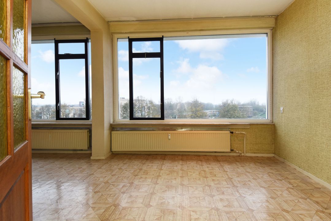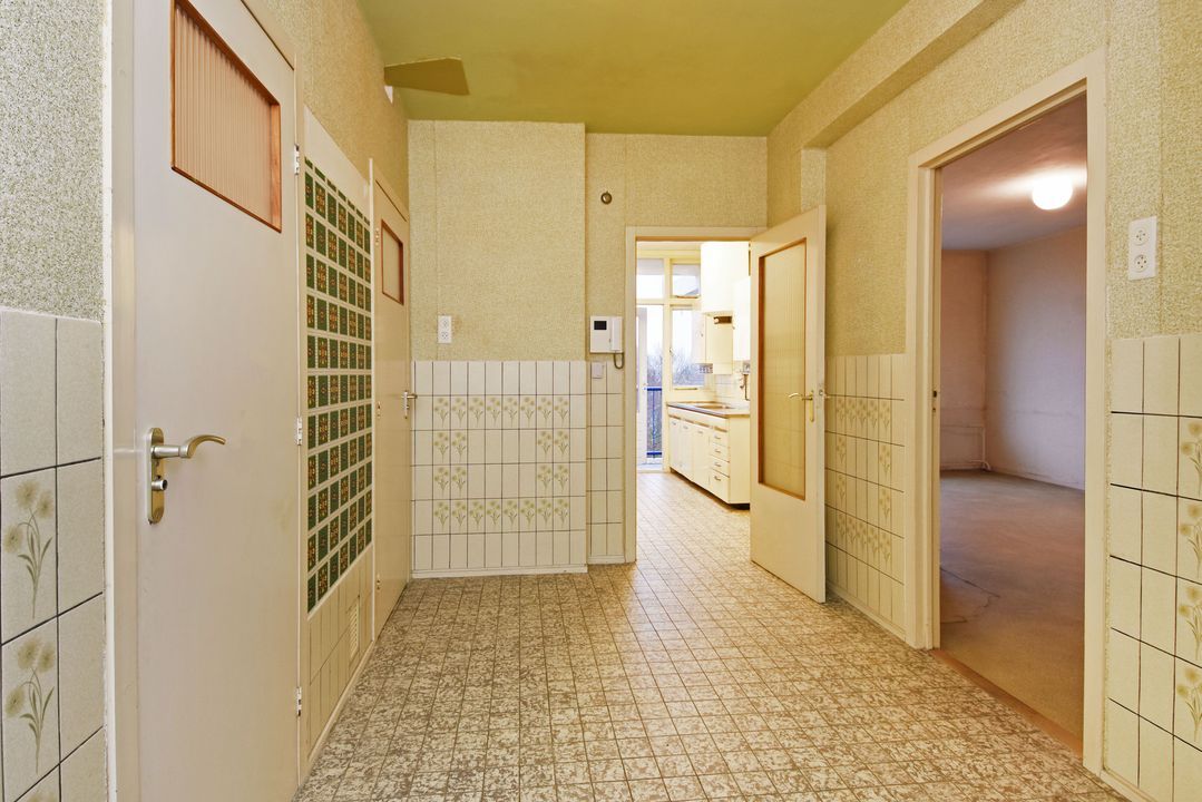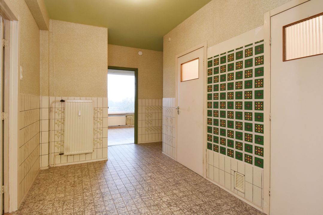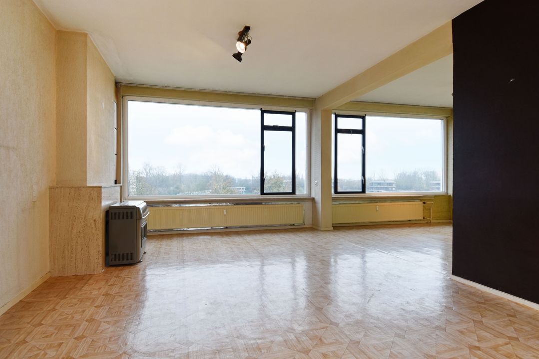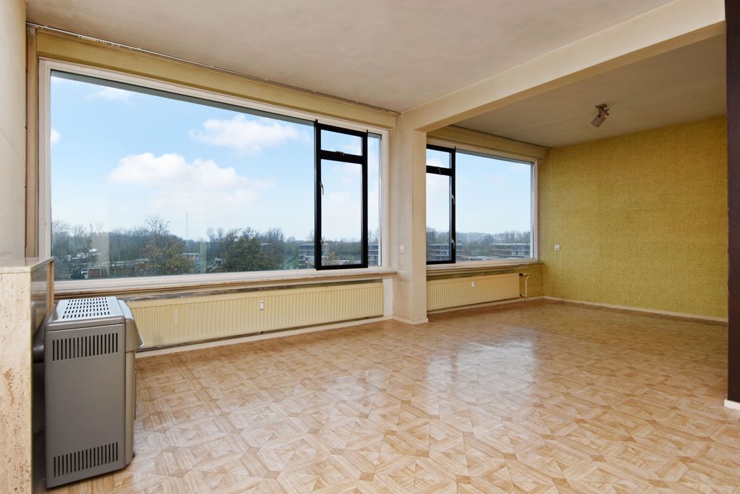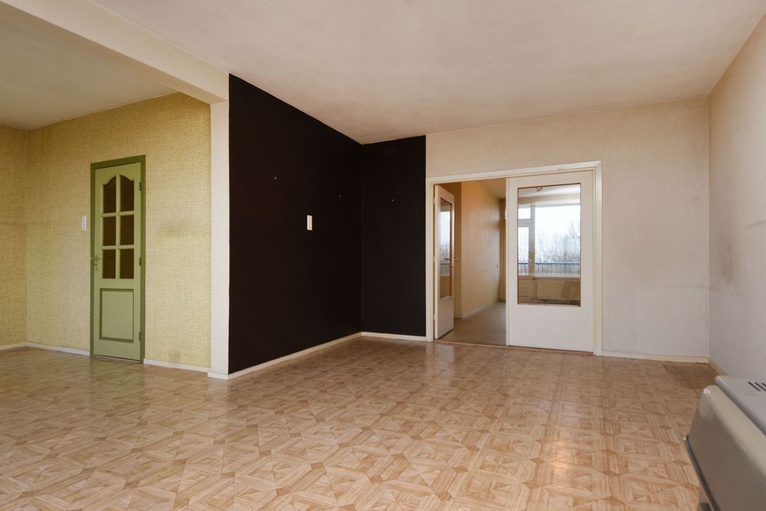 Gesloten centrale entreehal. Lift of trap naar 6e etage, entreehal met meterkast, woon-/eetkamer met bijgetrokken zijkamer en travertin schouw, keuken zonder apparatuur, slaapkamer aan de achterzijde, badkamer met bad/douchecombinatie en wastafel, toilet met fonteintje, balkon over de gehele breedte van de woning met balkonkast.