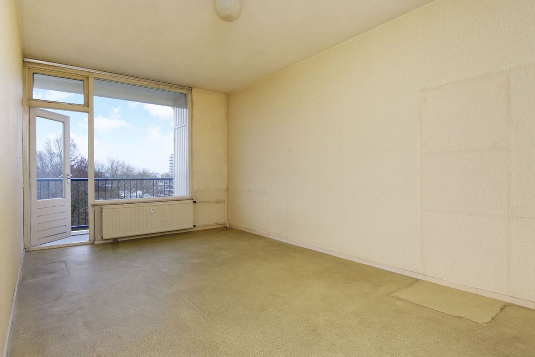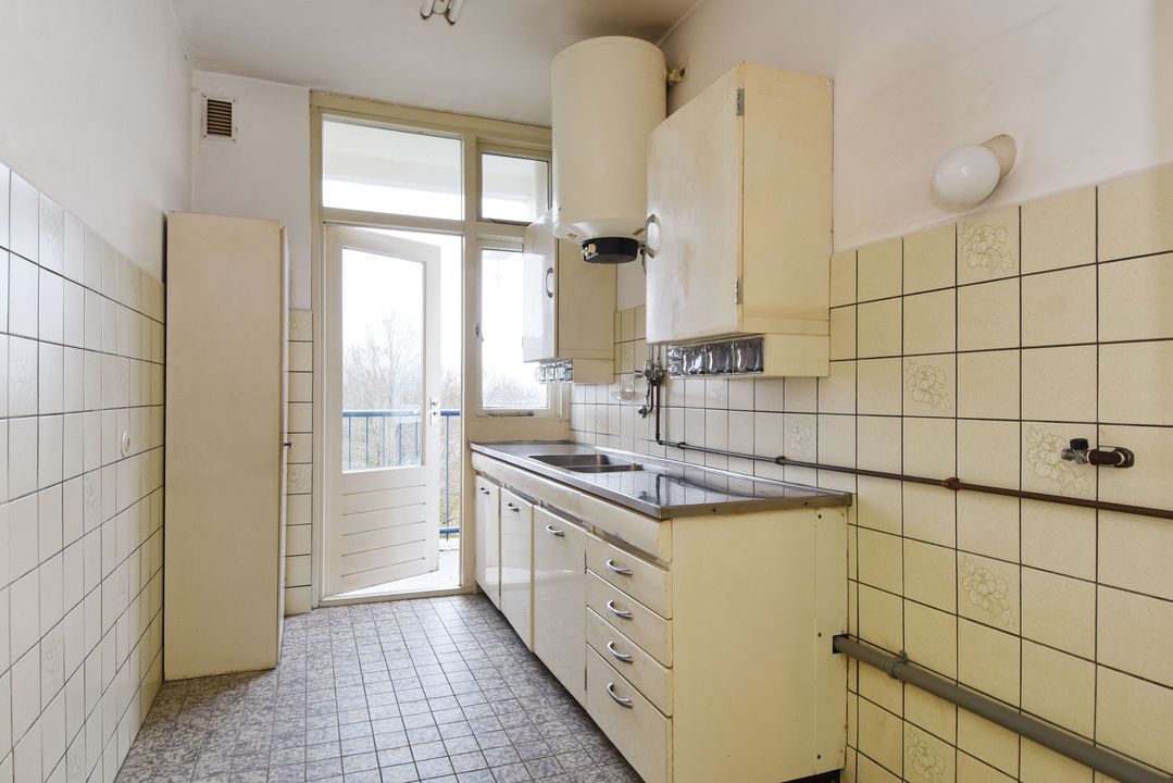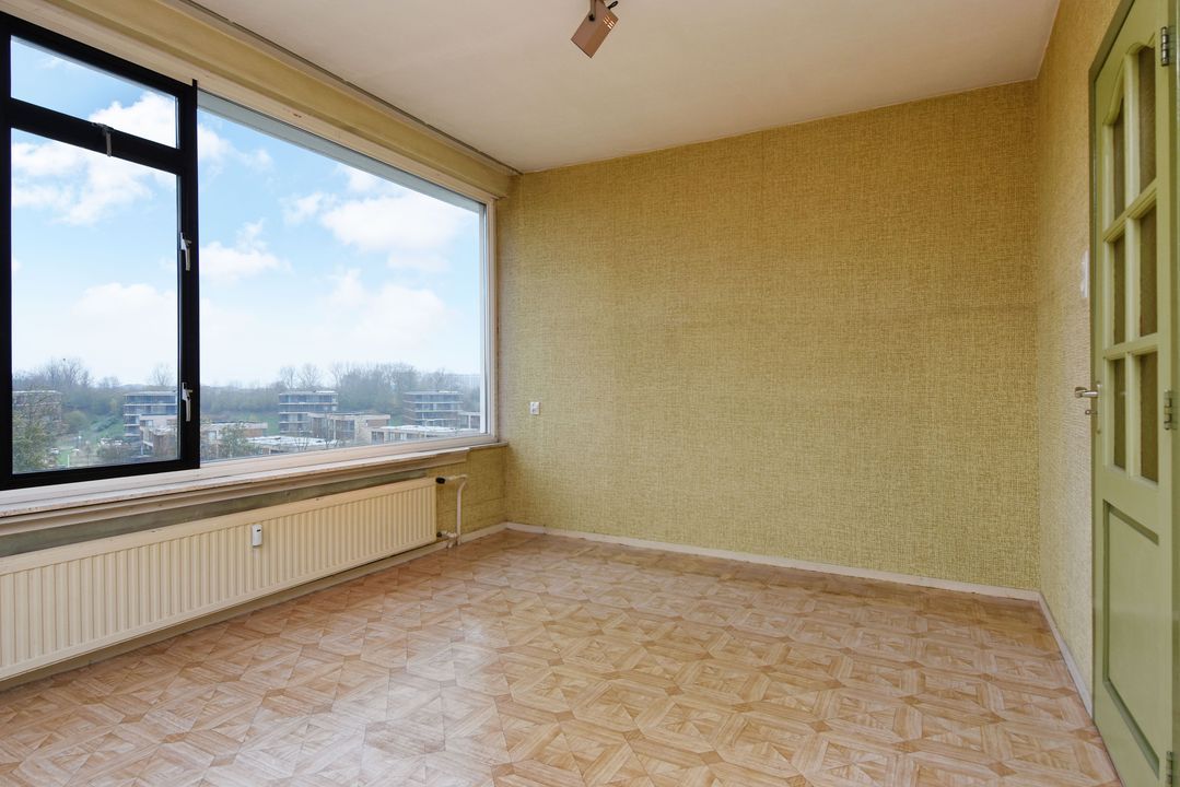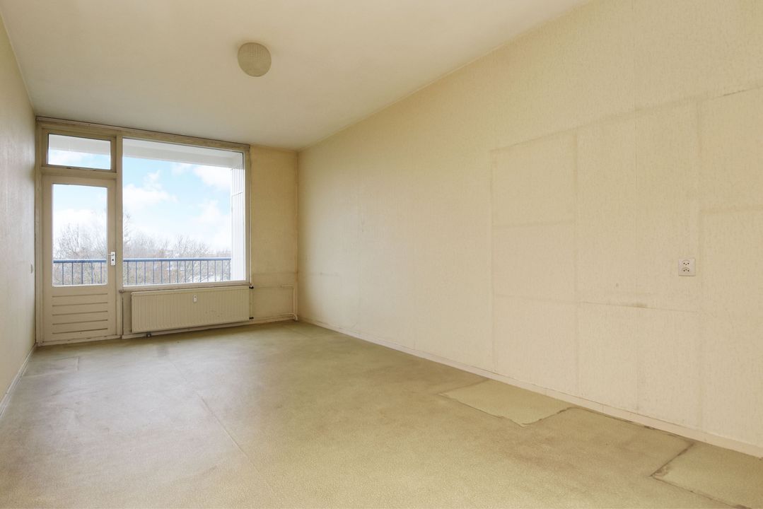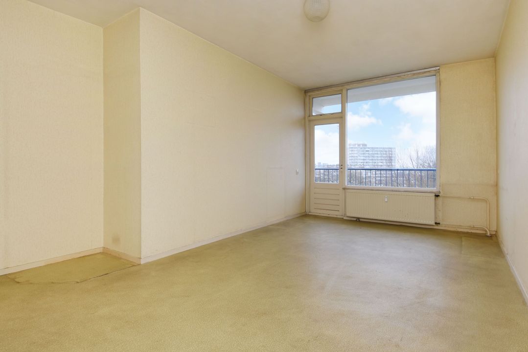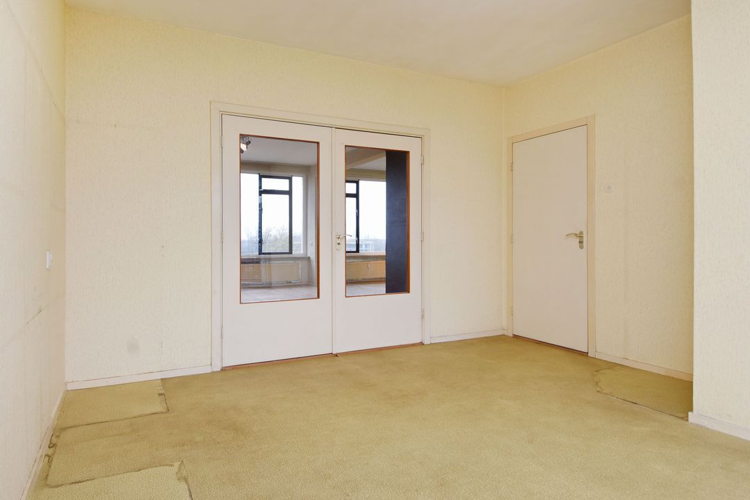 Gesloten centrale entreehal. Lift of trap naar 6e etage, entreehal met meterkast, woon-/eetkamer met bijgetrokken zijkamer en travertin schouw, keuken zonder apparatuur, slaapkamer aan de achterzijde, badkamer met bad/douchecombinatie en wastafel, toilet met fonteintje, balkon over de gehele breedte van de woning met balkonkast.