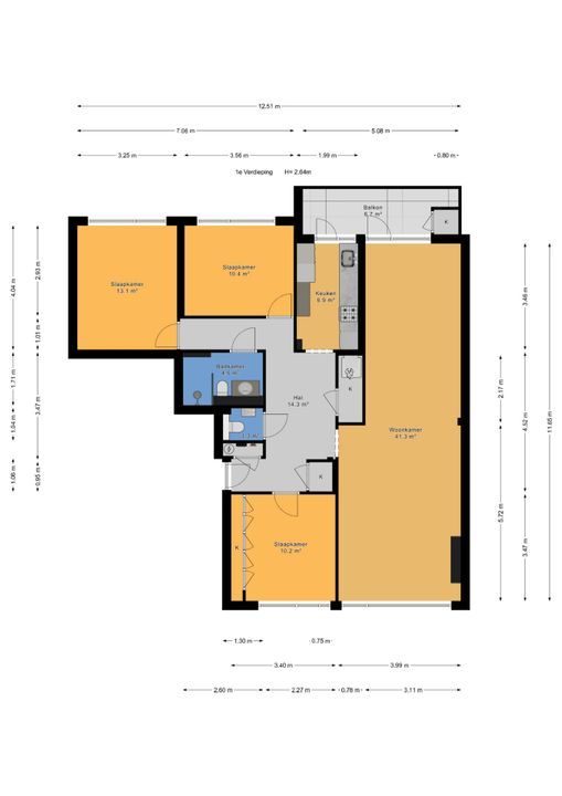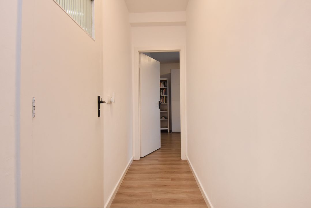 Access via a central entrance with mailboxes and doorbells, entrance to the apartment via the staircase or the elevator to the 1st floor, entrance of the apartment, central hall, meter cupboard, fixed closet, bedroom at the front with a fixed wall closet, toilet with a wall closet and a small washbasin, fixed closet with the connection for the washing machine and the location of the electrical boiler, indoor bathroom, renewed in 2020 and equipped with a 2nd toilet, a washbasin with furniture and a walk-in shower, modern kitchen, renewed in 2023, and equipped with an induction hob, a flat air extractor hood, a combined fridge-/freezer, a stainless steel sink and a 2nd kitchen block with a combined microwave oven. Via the kitchen there is access to the balcony with a fixed cupboard, the spacious living room also has access to the balcony at the rear, next to the kitchen there are the second and third bedroom accessible. On the ground floor there is a private (bicycle) storage room within the complex as well as a communal bicycle storage at the front of the complex.
