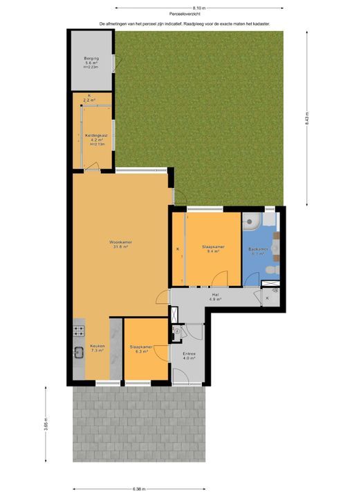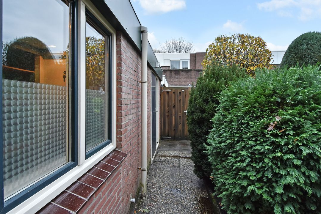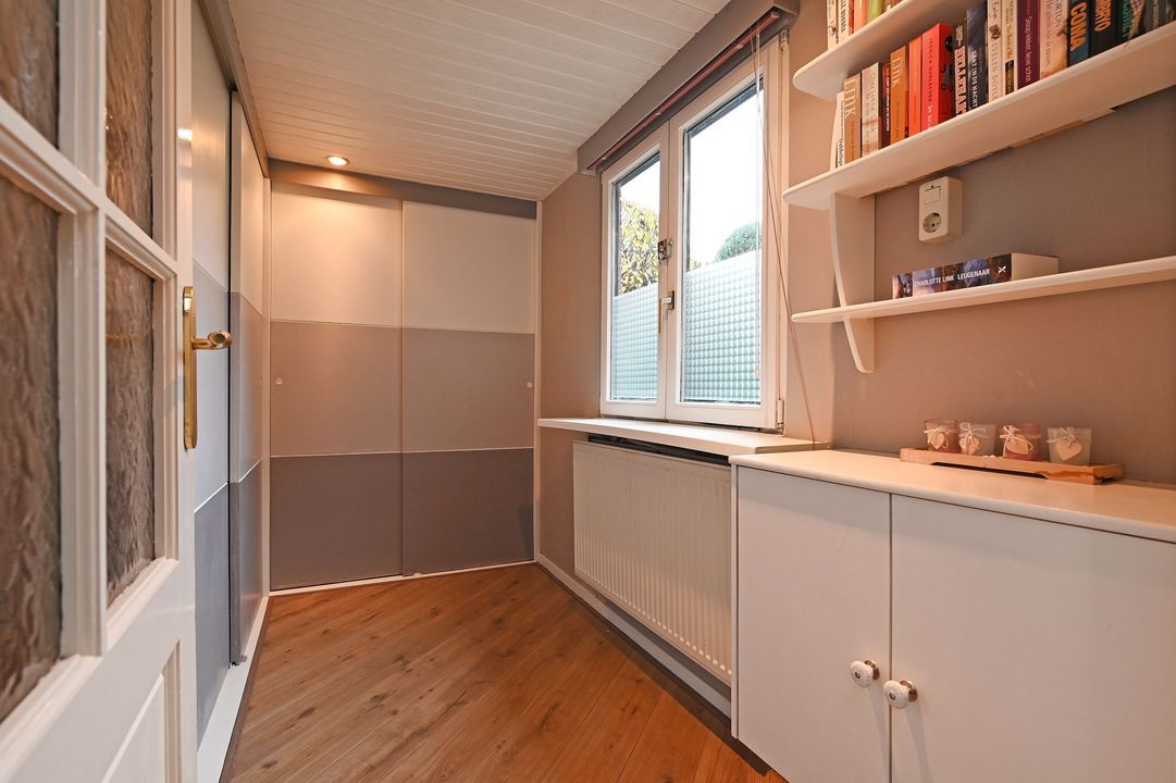 Voortuin op het zuidwesten met zeer veel privacy want geen overburen, entreehal met tochtdeur, meterkast en toegang tot de zijkamer, gang met vaste kast waarin de cv-ketel, badkamer met toilet, wastafelmeubel, douchecabine en de wasmachineaansluiting, slaapkamer met vaste kastenwand, woon-/eetkamer met half open keuken voorzien van 4-pits kookplaat, afzuigkap, oven, koelkast en vriezer, inpandige berging toegankelijk vanuit de woonkamer, riante achtertuin op de ochtend- en vroege middagzon met berging en achterom.
