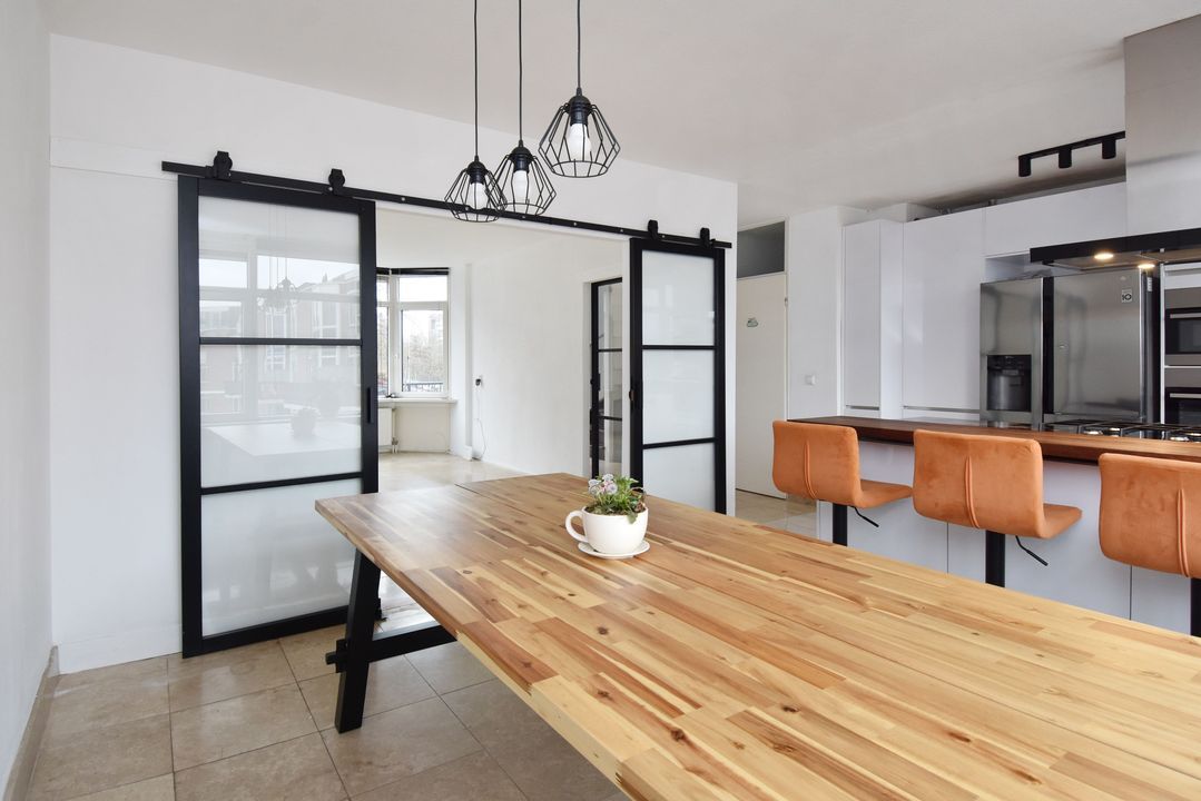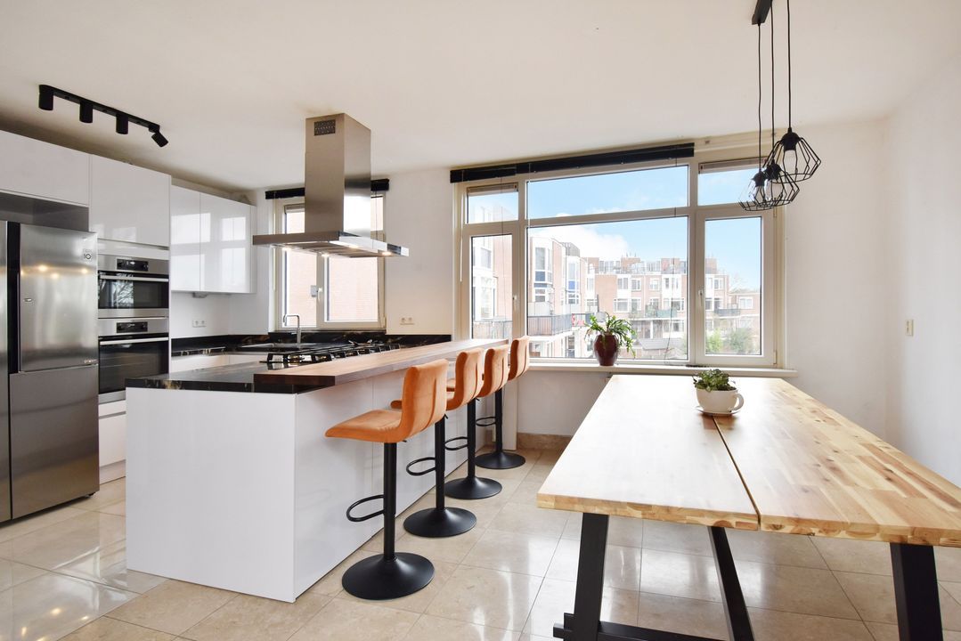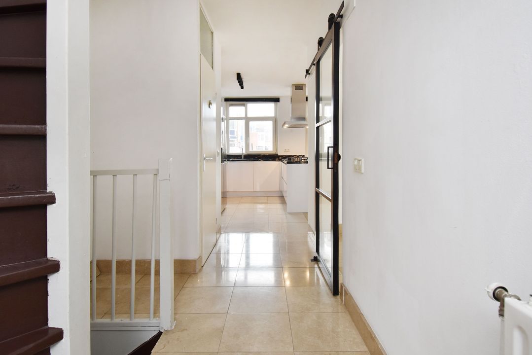 Entrance via a spiral staircase to the 2nd floor (1st floor), entrance of the apartment, hallway / hall, space under the stairs and meter cupboard with 7 groups, indoor staircase to the 3rd floor (2nd floor), landing, balcony at the front, toilet room with a wall closet and a sink, living room, kitchen from 2021 with a natural stone counter top and various built-in appliances, a Quooker tap as well as a closet with space for the central heating boiler, via the landing a staircase to the 4th floor (3rd floor), spacious landing, front bedroom, indoor bathroom renewed in 2019 and equipped with a wall closet, a walk-in shower, the connection for the washing machine, a sink with furniture and a design radiator, rear bedroom over the full width (previously 2). This rear bedroom is relatively easy to convert back to 2 bedrooms, see the floor plan in which this is indicated as an option.