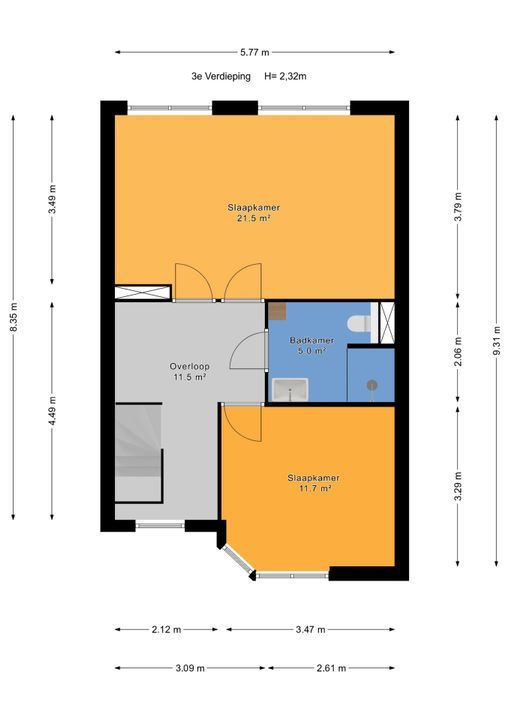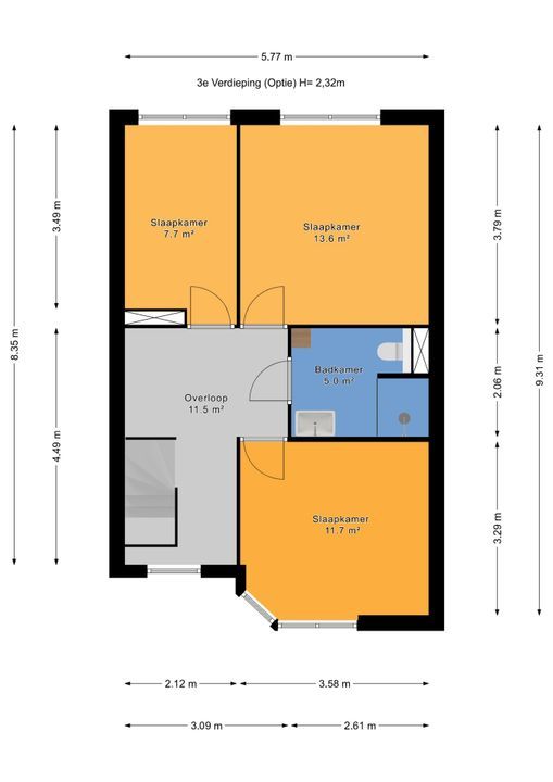 * thans 2 slaapkamers, met mogelijkheid voor realiseren van een 3e slaapkamer