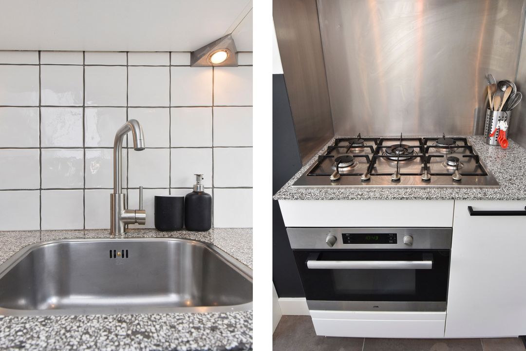 Entree via een open portiek, trap naar de 1e etage; entree appartement, gang, meterkast, inpandige trap naar de 2e etage, overloop met een houten vloer doorlopend in het appartement, moderne badkamer met een inloopdouche, vaste wastafel met meubel en een toilet, kleine slaapkamer aan de achterzijde met openslaande deuren naar het balkon, vaste kast, keuken met een moderne inrichting voorzien van diverse apparatuur waaronder een 5-pits kookplaat, een afzuigkap, een oven, een koel-/ vriescombinatie en een vaatwasser, opstelplaats van de cv-combiketel en deur naar het balkon aan de achterzijde, ruime slaapkamer aan de voorzijde met openslaande deuren naar het balkon aan de voorzijde, ruime doorgebroken woon-/ eetkamer met een erker aan de voorzijde