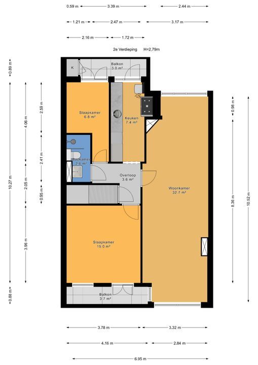 * De woning beschikt over een balkon aan de voor- en aan de achterzijde