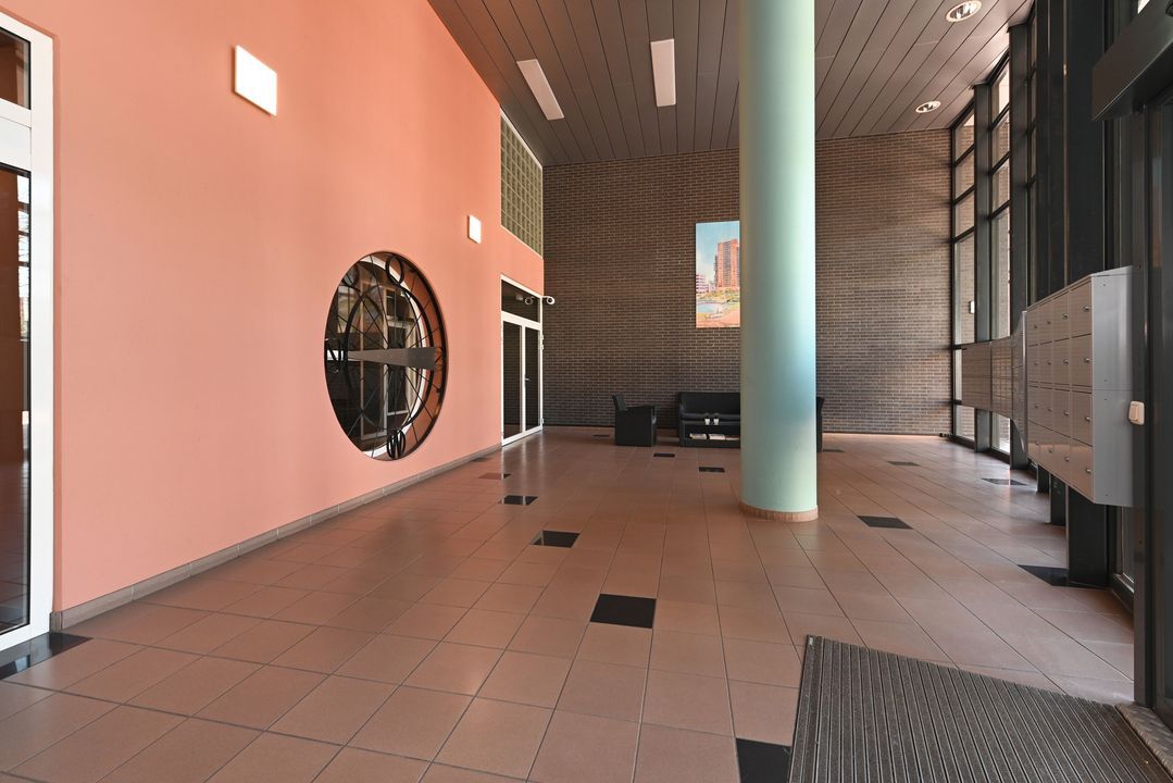Het complex zelf heeft een chique entreehal met bellentableau (videofoon installatie) en brievenbussen, er zijn 2 liften (met noodstroomvoorziening) en een trappenhuis naar alle verdiepingen. Tevens is er een Inpandige moderne fietsenstalling op de begane grond en beschikt het appartement over een eigen inpandige berging op de 1e etage en een open parkeerplaats op het parkeerdek bereikbaar via een loopbrug op de 6e woonlaag.