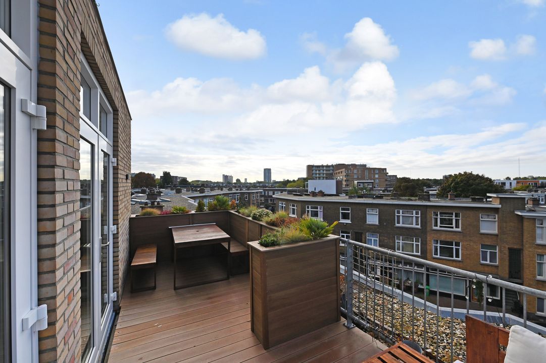 Ruime maisonnette aan het Notenplein met twee riante dakterrassen, twee luxe badkamers, vier slaapkamers en twee luxe badkamers. Op eigen grond en met een actieve VvE.