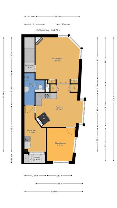 87m² 3 kamers
