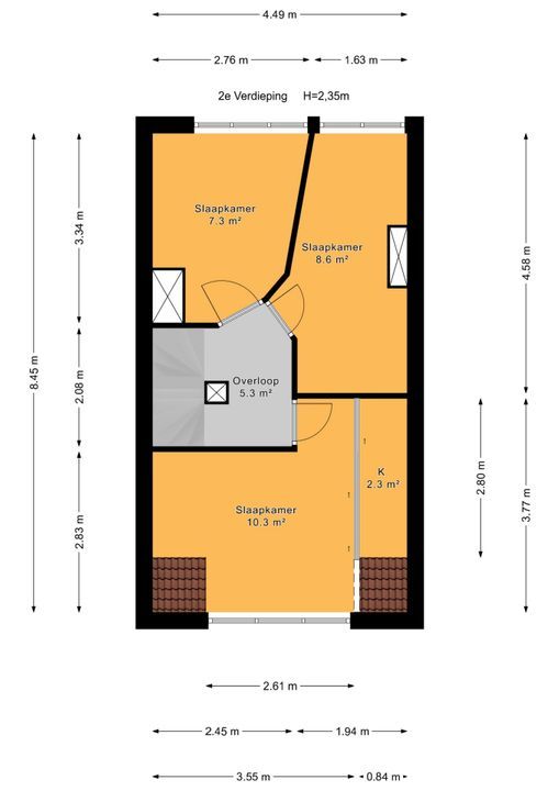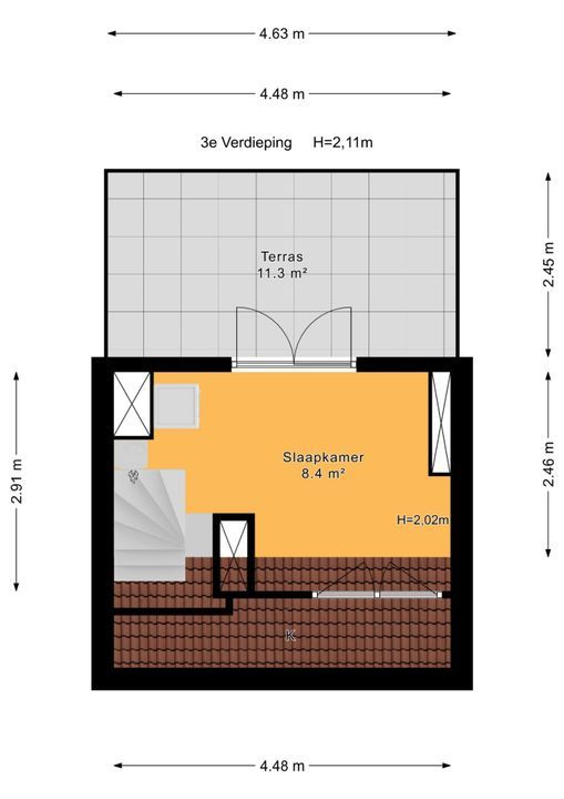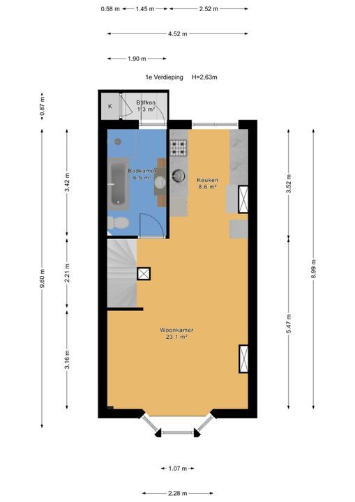 De indeling van deze leuke dubbele bovenwoning is als volgt;