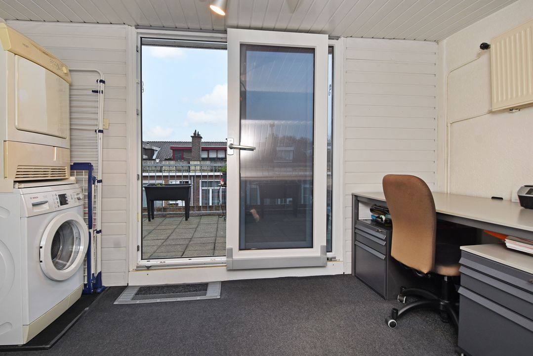 Open zolderruimte met veel bergruimte in het knieschot en mogelijkheid om er een 4e slaapkamer van te maken, tevens toegang middels een schuifpui naar het dakterras van ca. 12 m2. In het trapgat nog de opstelplaats van de c.v.-ketel uit 2009.