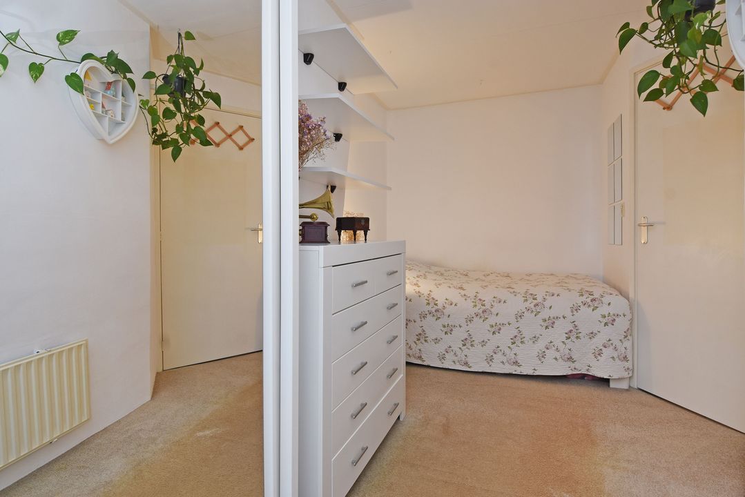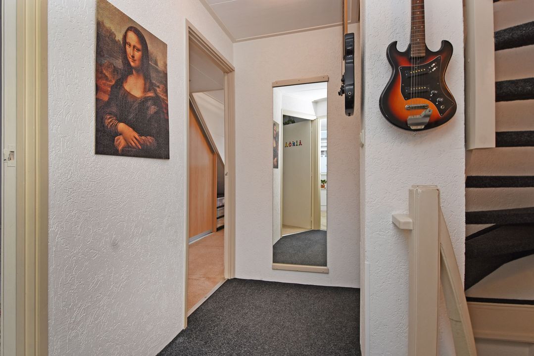 Overloop, achterzijslaapkamer, achterslaapkamer, voorslaapkamer met een vaste kastenwand en een dakkapel met bergruimte in het knieschot, via de overloop middels een vaste trap opgang naar de....