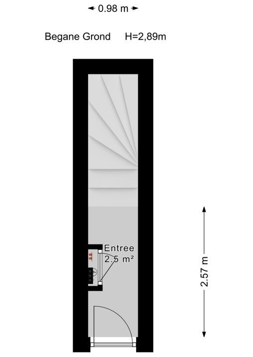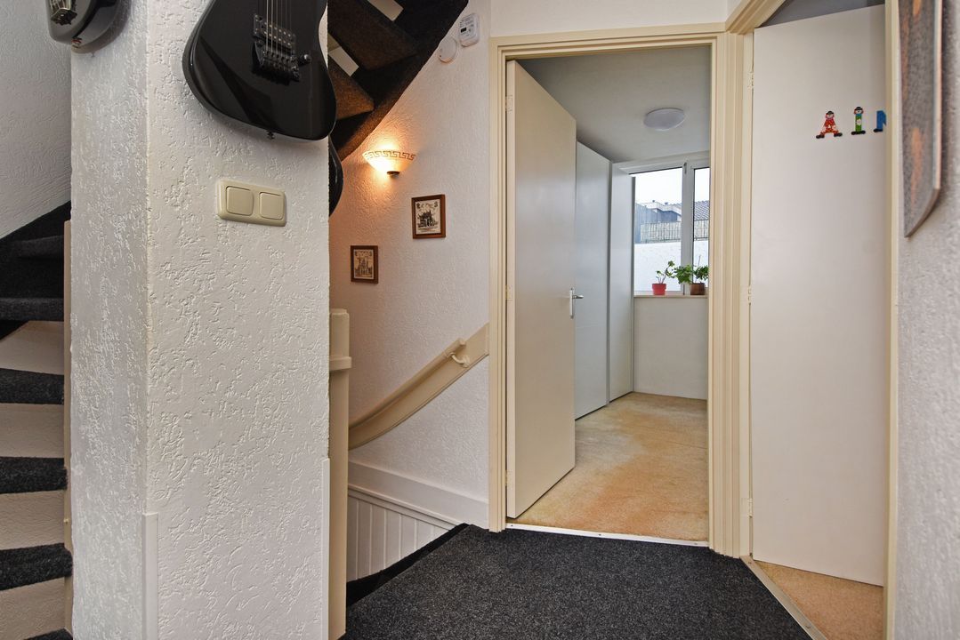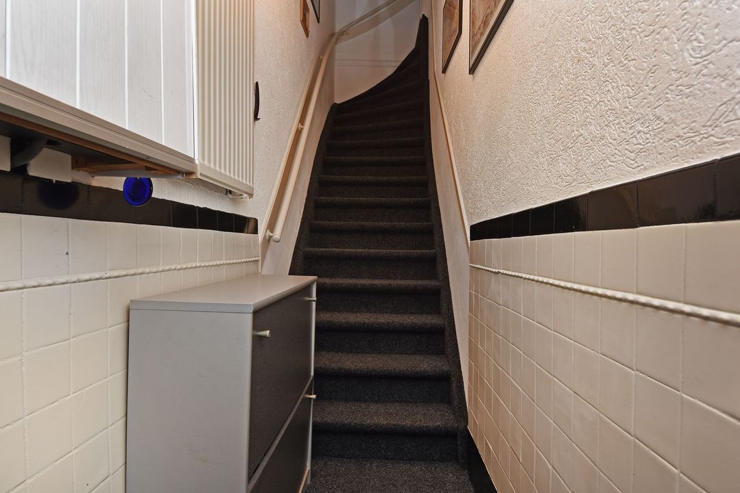 Toegang woning op de begane grond, gang, meterkast en bergruimte, inpandige trap naar de.....