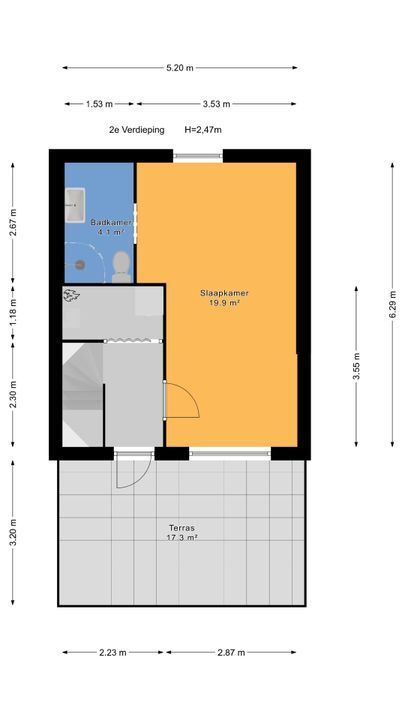* dakterras voorzijde ca. 17 m²